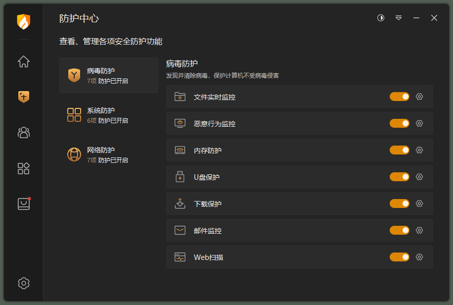 实时防护:火绒安全软件具有强大的实时防护功能,可以有效拦截各类病毒、木马、流氓软件等恶意程序,确保电脑安全。